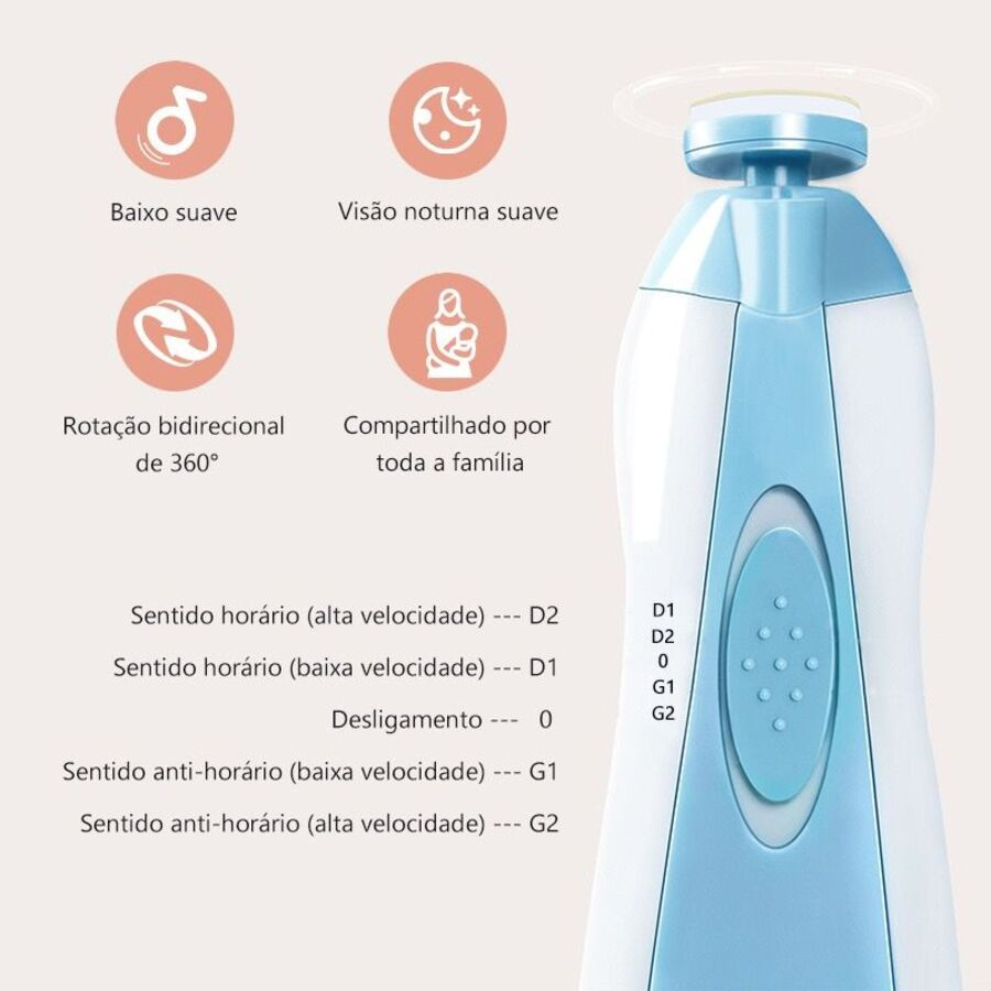 O Cortador Aparador de Unha Elétrico Infantil – La Mamma Connect foi desenvolvido para lixar e aparar as unhas do bebê de forma segura, delicada e precisa, sem cortes ou riscos. Ideal para recém-nascidos, bebês e até adultos.