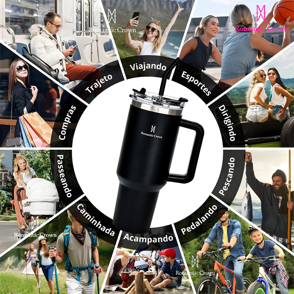 Com 1.2L (40oz), o Copo Térmico Romantic Crown é perfeito para quem precisa se hidratar ao longo do dia sem reabastecer o tempo todo — seja no trabalho, academia, viagens ou em casa.